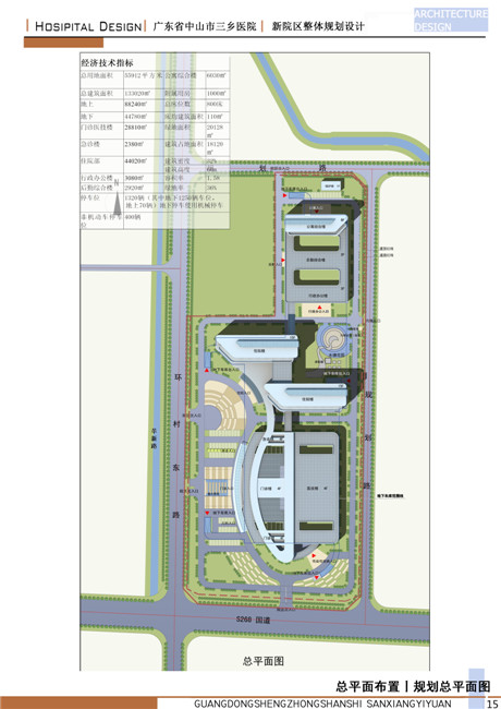 新三乡医院按照中山市区域中心医院基本标准建设成为一家三级综合医院。新三乡医院选址中山市三乡镇广珠公路北侧,占地面积89亩,拟设置800张床位,项目总建筑面积约为133000平方米,其中地上建筑面积约88000平方米,地下建筑面积约45000平方米。拟建建筑含:门诊楼、急诊、医技楼、住院楼、后勤保障楼、行政楼、院内生活楼。配套设施含:道路、广场、绿化、综合管线等。